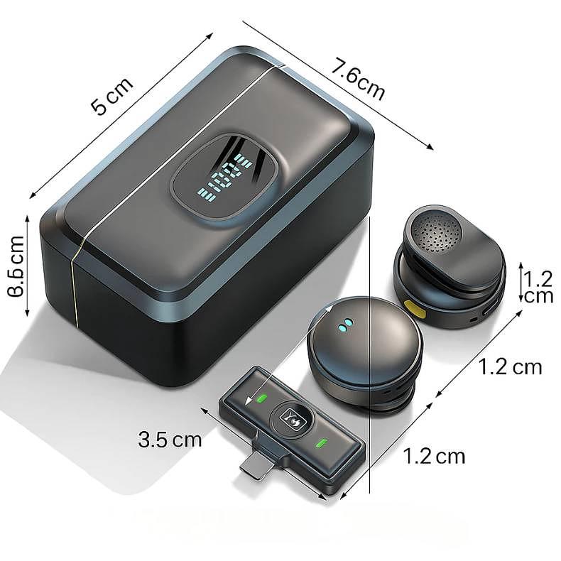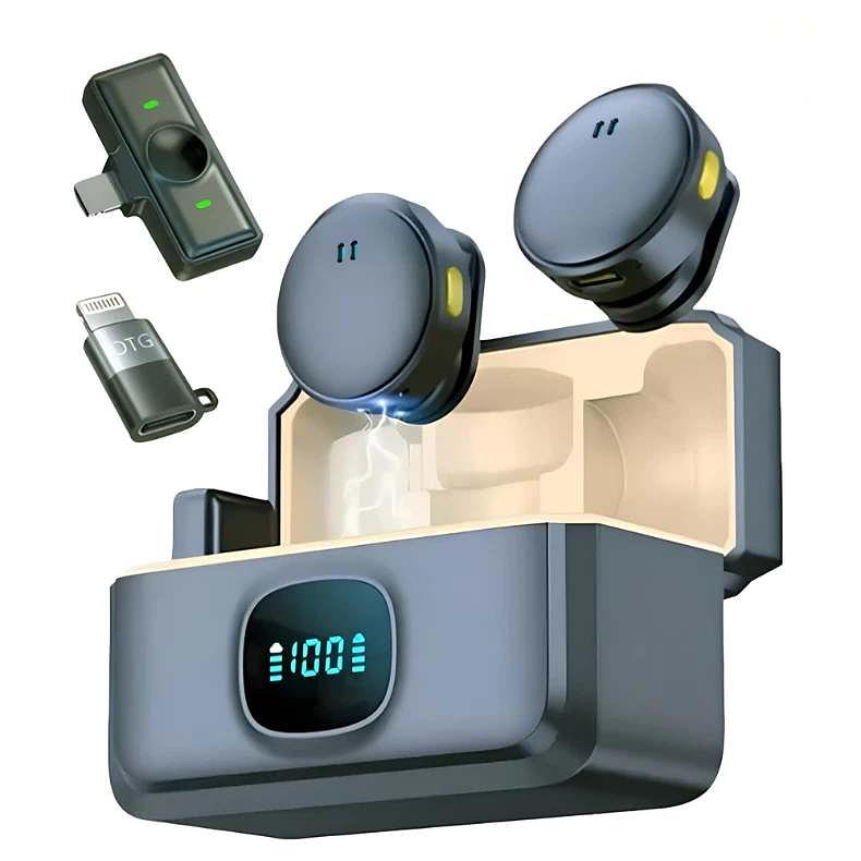 2 microfone de lapela sem fio (Type C ou Lightning)