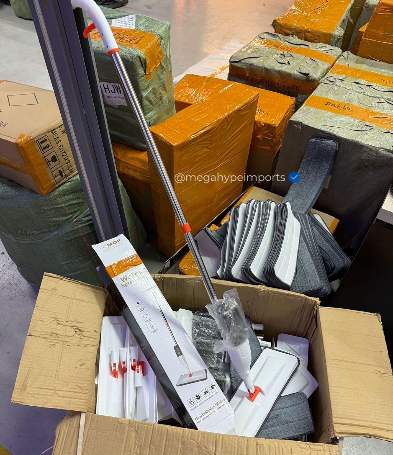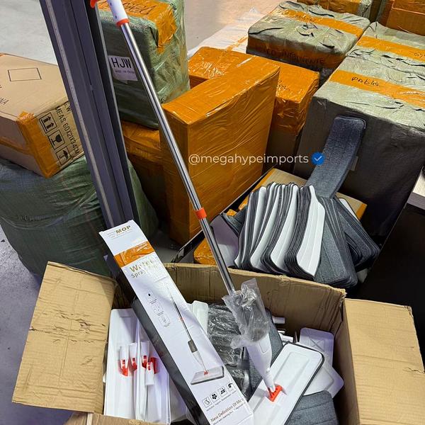 • O esfregão tem uma cabeça de limpeza rotativa.