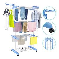 Varal de Chão Dobrável com Rodinhas – 3 Andares Reforçados e Retráteis