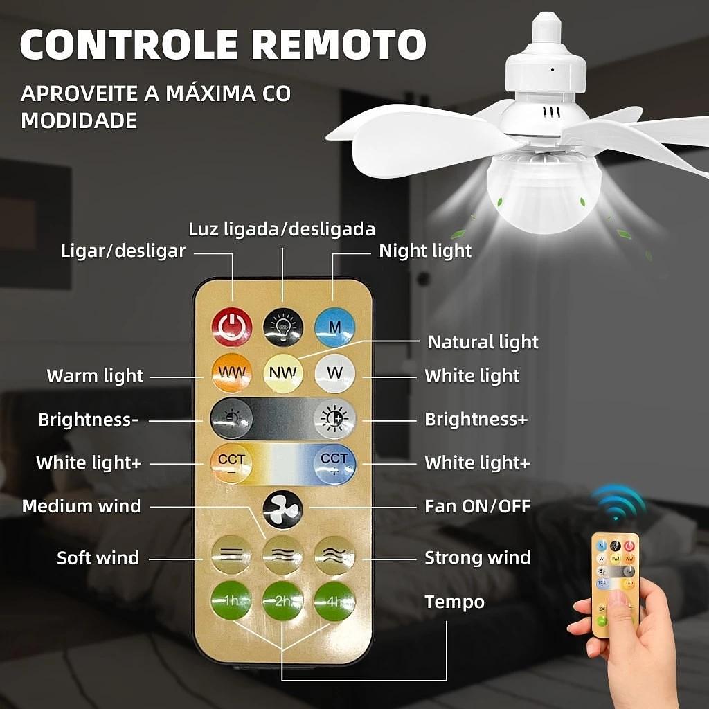 O ventilador conta com uma iluminação de alta qualidade, economizando energia e proporcionando uma luz suave e agradável. Você pode escolher entre 3 tipos de luz: branca, amarela e neutra, ajustando o ambiente conforme sua necessidade.
